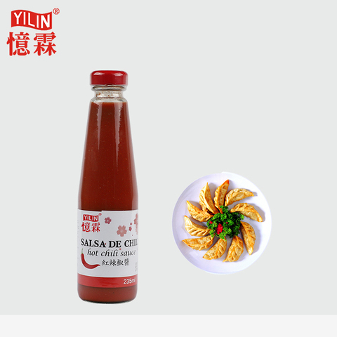 Botella de vidrio para salsa de chile picante de 235ml para alimentos fritos para cocinar